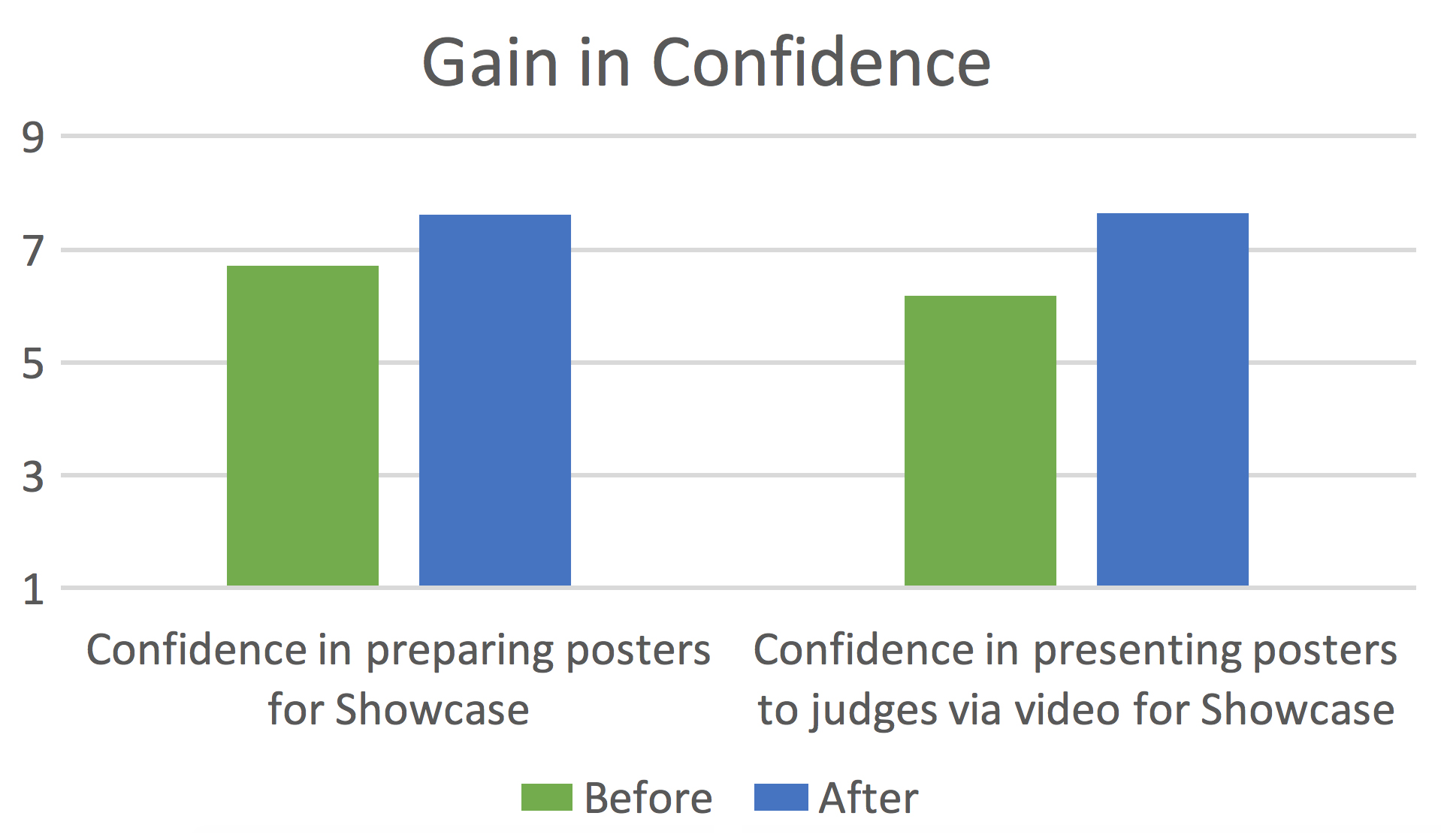 Fig. 2. Students reported increased confidence with regard to preparing and presenting posters after participating in 2015 Virtual Poster Showcases. Credit: Kelsey Watson, Fall 2015 Education and Public Outreach intern, and Tess Reardon, Spring 2016 Education and Public Outreach intern