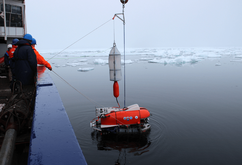 During those summer dives in the Arctic Ocean about 200 kilometers northeast of Greenland, NUI found unexpectedly high amounts of algae and other biological productivity under the ice that appear to support a diverse food web in the region, according to the scientists. “What might look on the surface like a barren wasteland may actually be a thriving biological community,” said Christopher German at the Woods Hole Oceanographic Institute (WHOI). He is co–principal investigator for the design and construction of NUI and science lead for the NUI Arctic dives. The approximately $3 million vehicle was designed and built at WHOI, and it was tested during a scientific expedition aboard the Alfred Wegener Institute’s Polarstern research vessel.