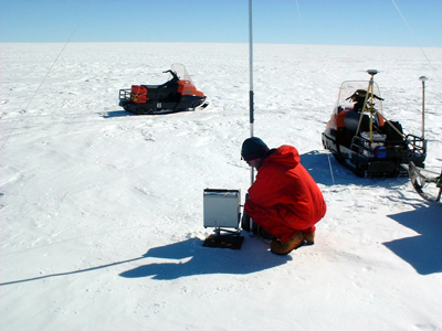 Conducting terrestrial gravity measurements in Antarctica is time-consuming (as shown during an observation campaign in central Dronning Maud Land, East Antarctica). Therefore, airborne gravimetry provides the only viable and powerful method to survey extended areas in Antarctica. Credit: M. Scheinert