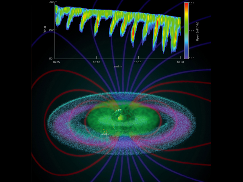 The first event, observed in June 2010, revealed electromagnetic emissions of rising-tone MS waves. The authors studied a second rising-tone MS wave event, observed in August 2010, to eliminate the possibility that the previous rising-tone MS wave emissions were a one-time event. On the basis of the rising-tone feature of MS waves, the scientists concluded that MS waves were possibly generated from nonlinear interactions. (Listen to a sample of the rising-tone MS waves in the sound clip below.)